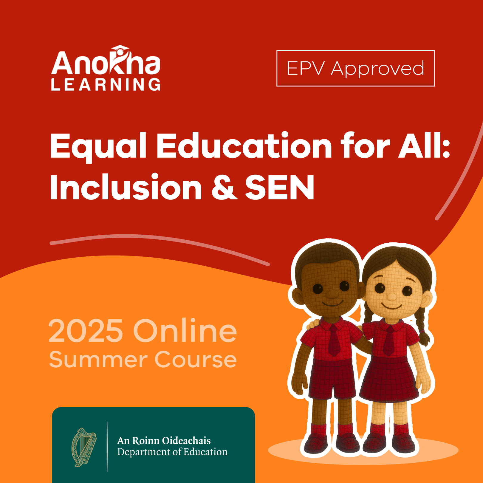 Summer Courses 2025 Helping Children to Cope with AnxietyBy Dr David Coleman Read More Equal Education SEN and InclusionBy Aoife Breslin Read More Emotional and Mental Health FitnessBy Jannah Walshe Read More Calm BootcampBy Ciara Lynch Read More Your subscription could not be saved. Please try again. Your subscription has been successful. Anokha Learning Newsletter Subscribe to our newsletter and stay updated. Enter your email address to subscribe Provide your email address to subscribe. For e.g abc@xyz.com Opt-in I agree to receive your newsletters and accept the data privacy statement. You may unsubscribe at any time using the link in our newsletter. SUBSCRIBE